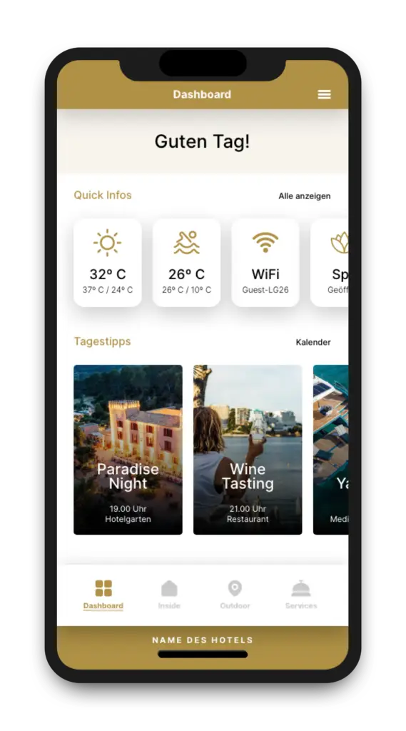Ein persönlicher Begleiter der informiert und inspiriert. Der Gast kommt vorbereitet an den Info-Desk – und Ihr Team bestätigt statt zu erklären. Gäste die auch außerhalb gut beraten sind, erleben mehr – und bewerten besser.
